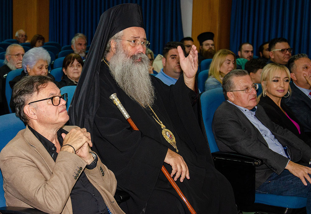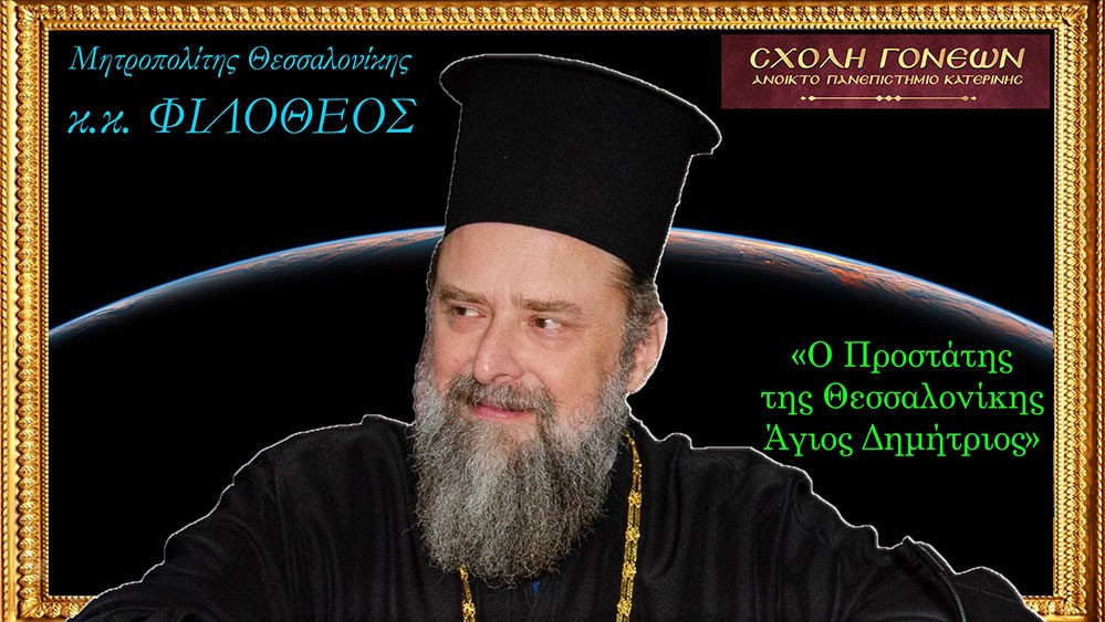 Πλημμύρισε από την «παρουσία» και την «ευωδία» του Αγίου Δημητρίου του Μυροβλήτη το Συνεδριακό κέντρο της Κατερίνης στην πρεμιέρα των εκδηλώσεων της Σχολής Γονέων – Ανοικτό Πανεπιστήμιο Κατερίνης με επίσημο ομιλητή και καλεσμένο τον Παναγιώτατο Μητροπολίτη Θεσσαλονίκης κ.κ. ΦΙΛΟΘΕΟ, ο οποίος μίλησε με γλαφυρό και αφοπλιστικό λόγο για τον Προστάτη Άγιο της Θεσσαλονίκης τον Άγιο Δημήτριο.